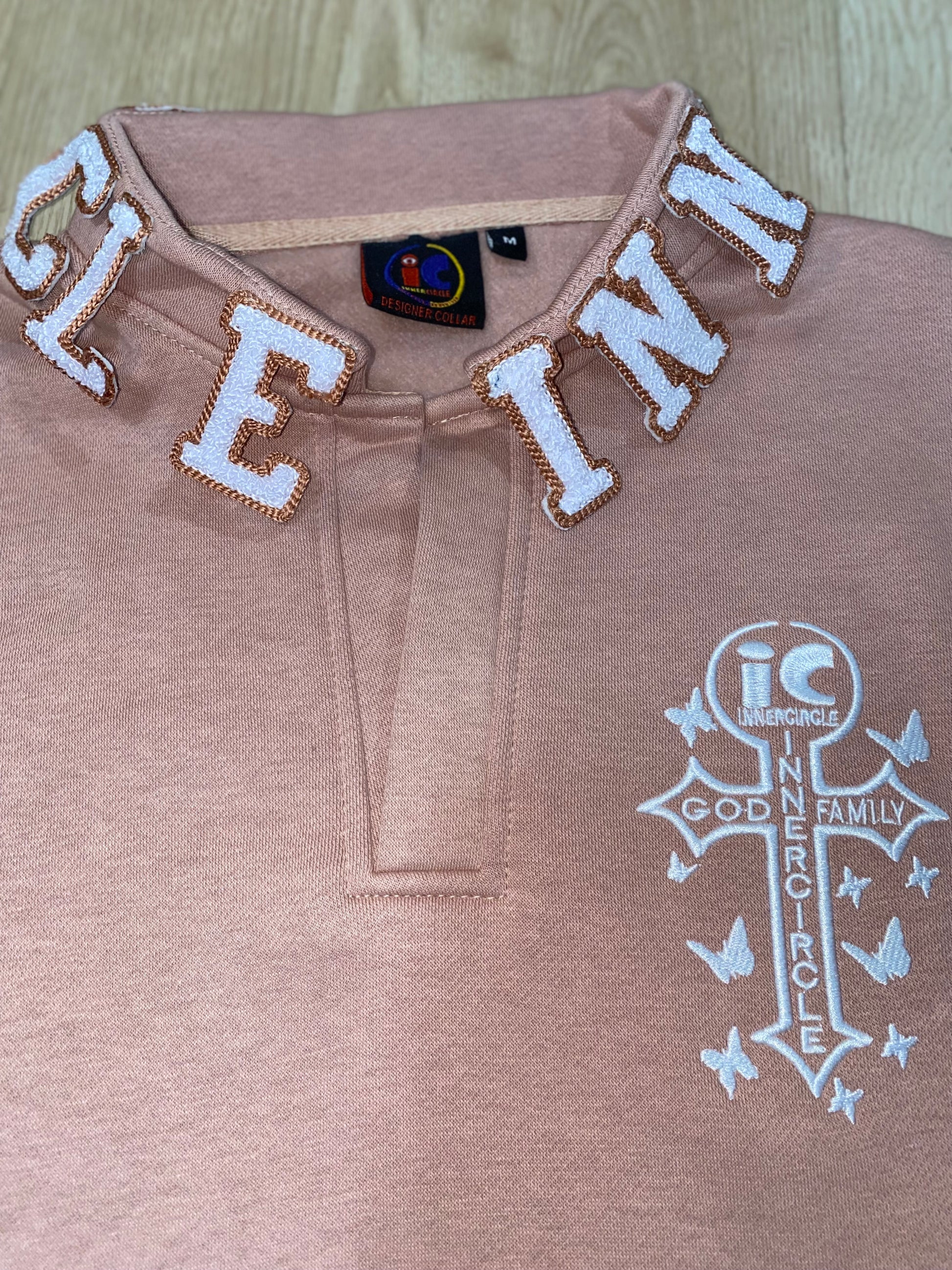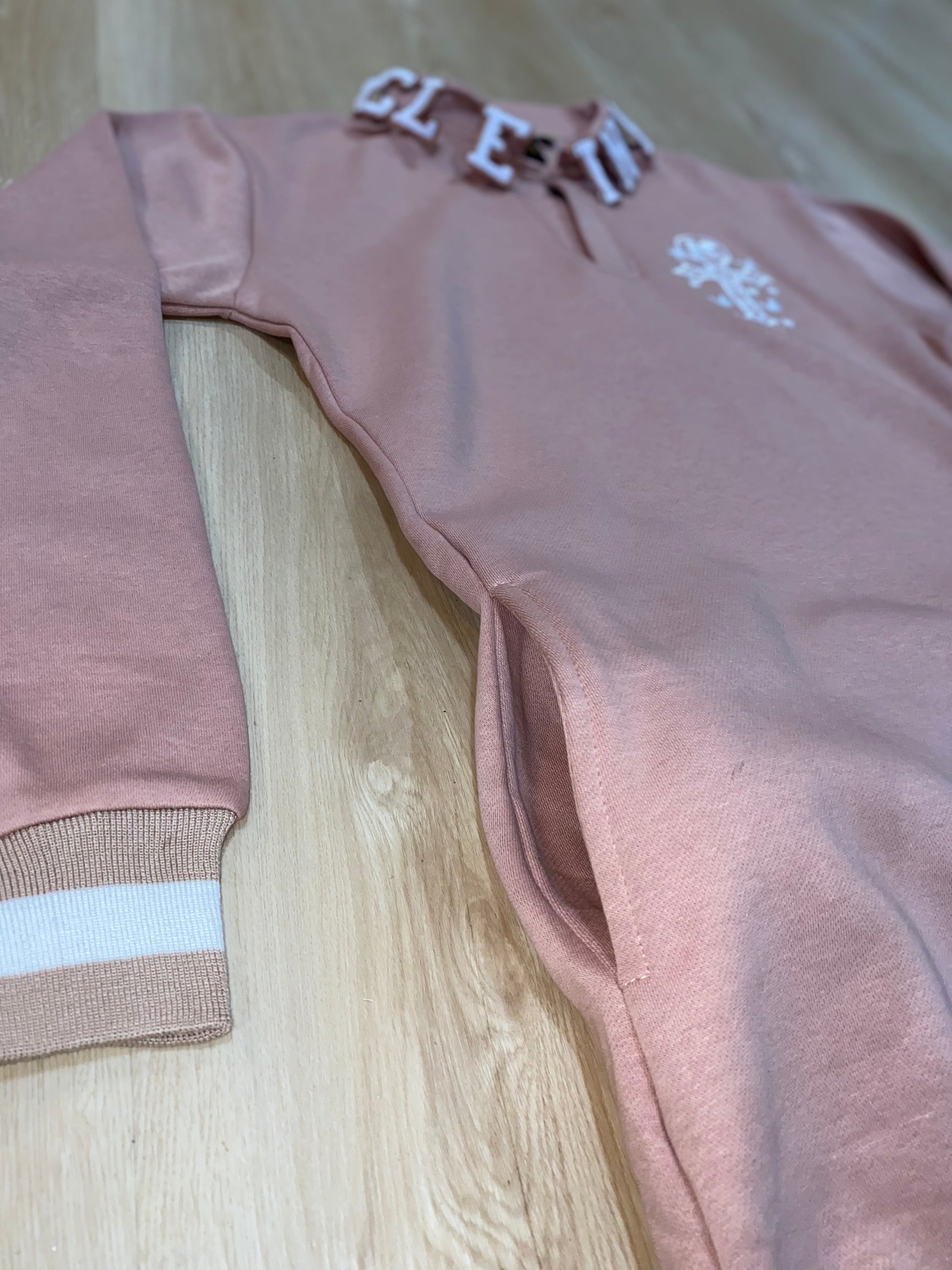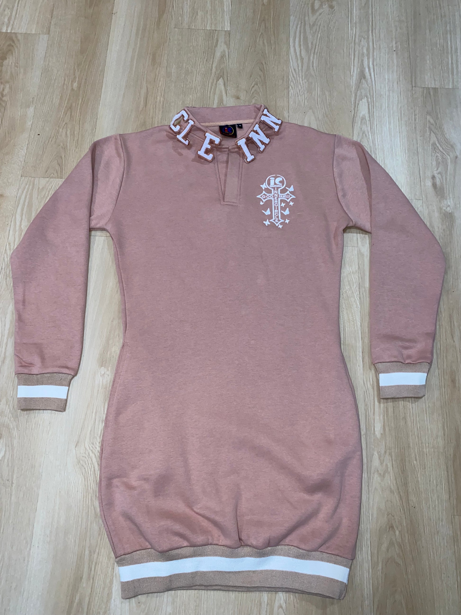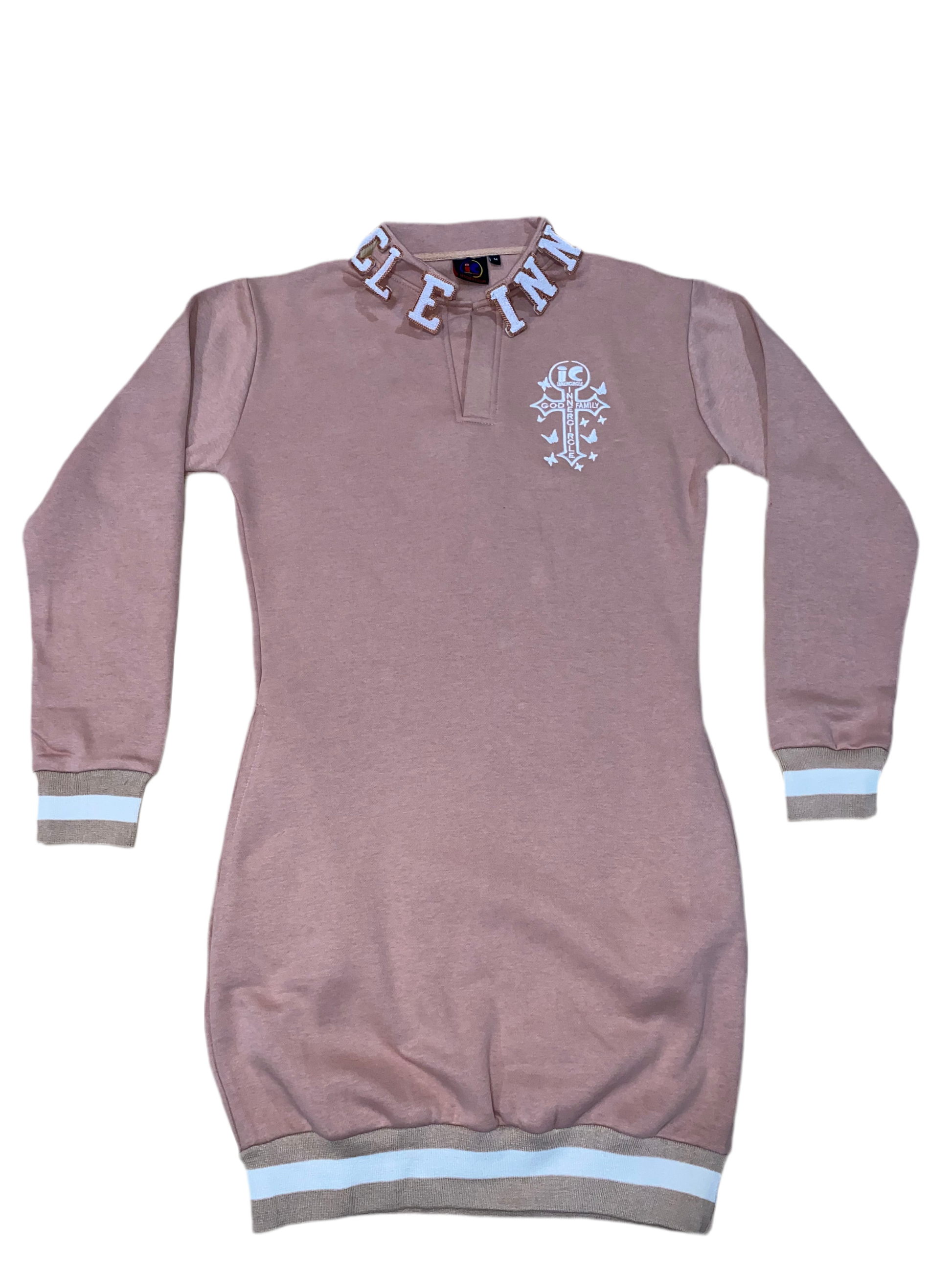 Soft touch fitted to body Collared Dress embroidered logo big vinyl logo back