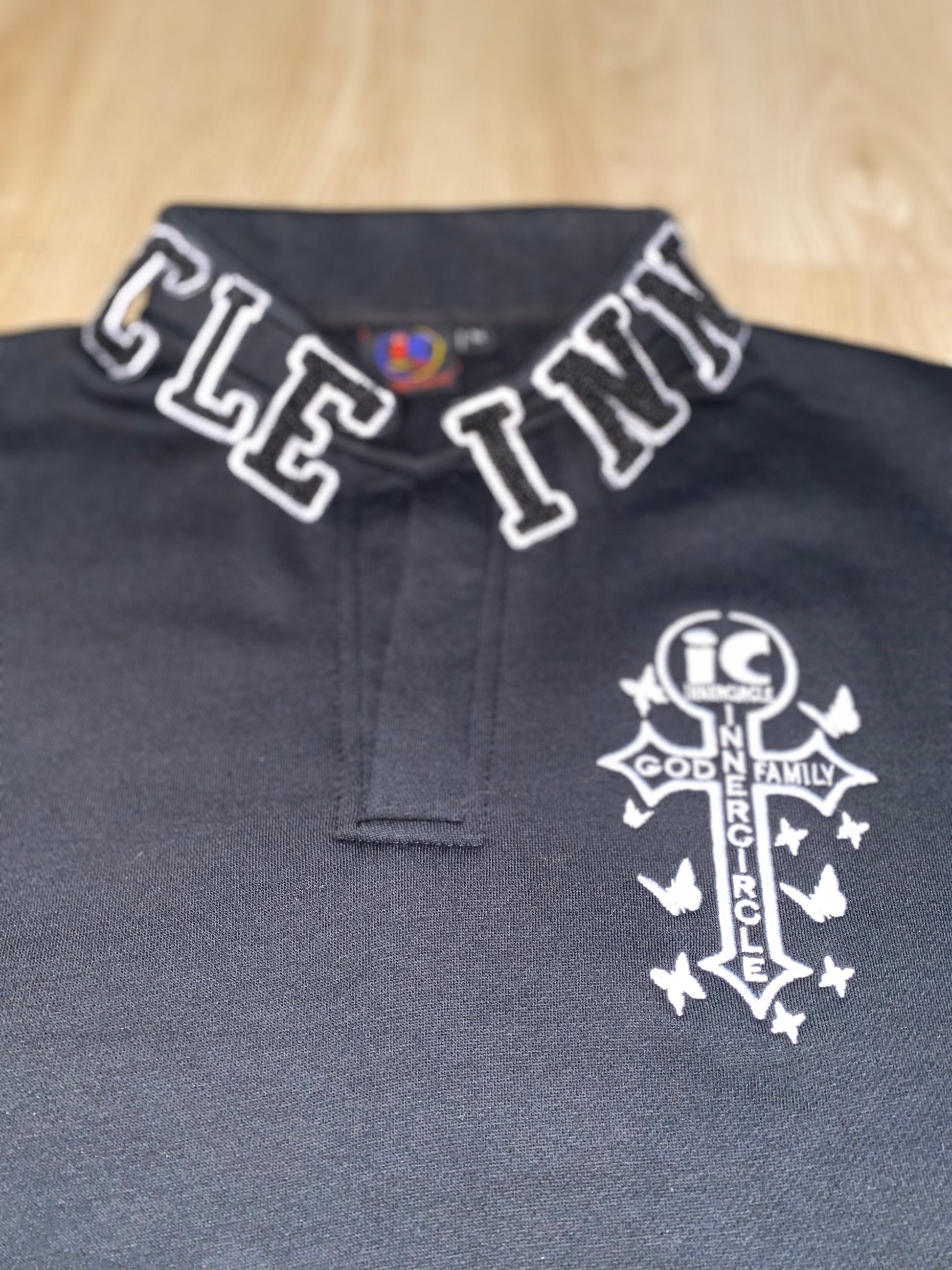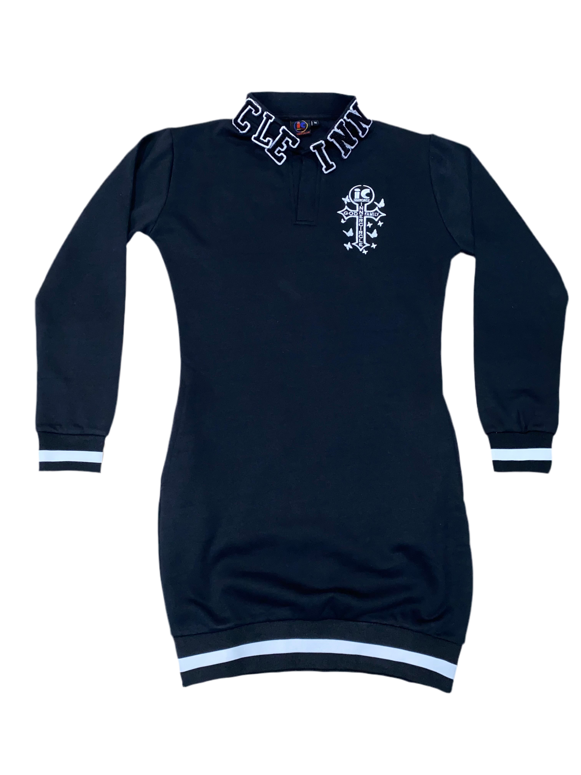 Soft touch fitted to body Collared Dress embroidered logo big vinyl logo back
