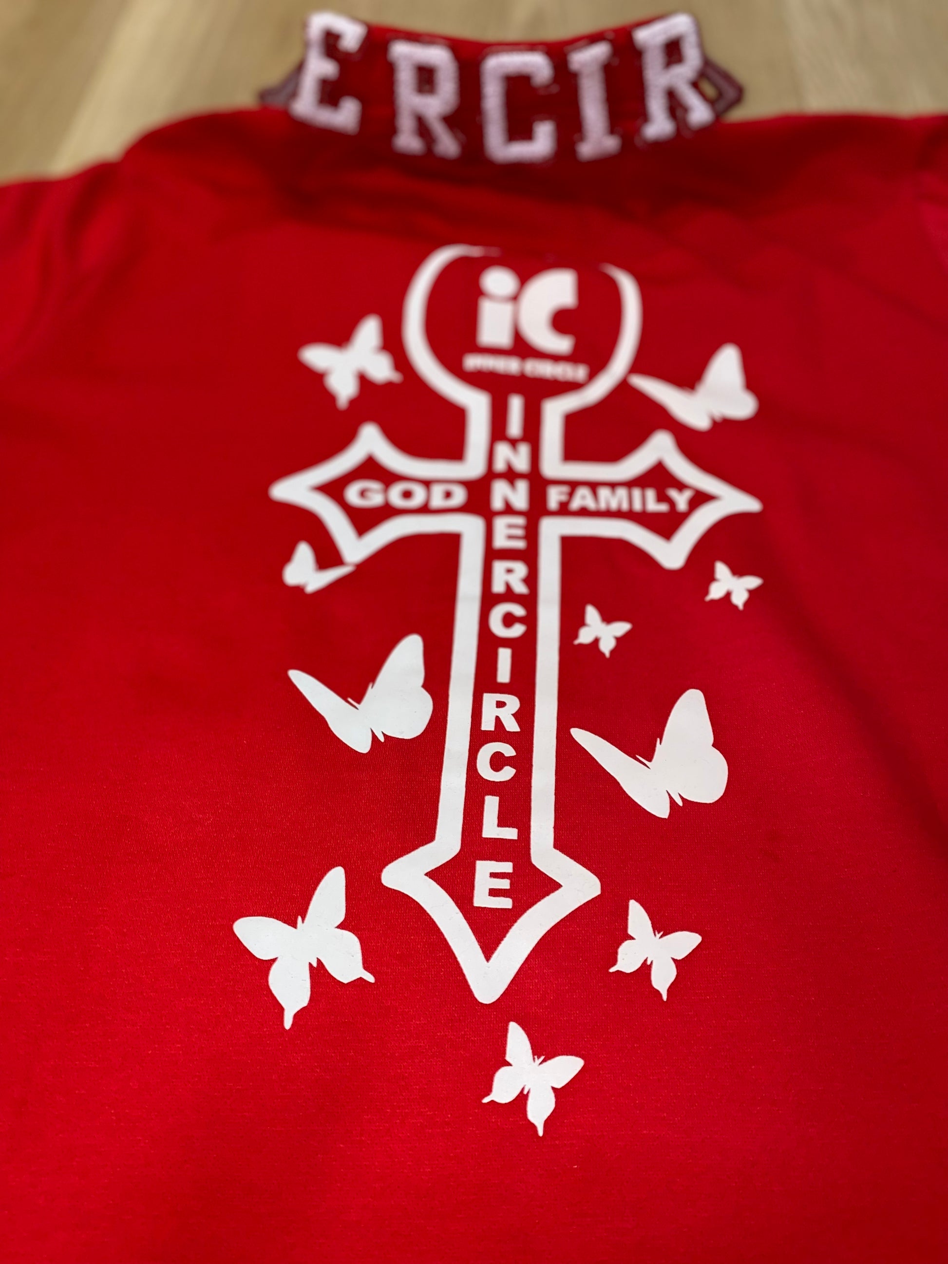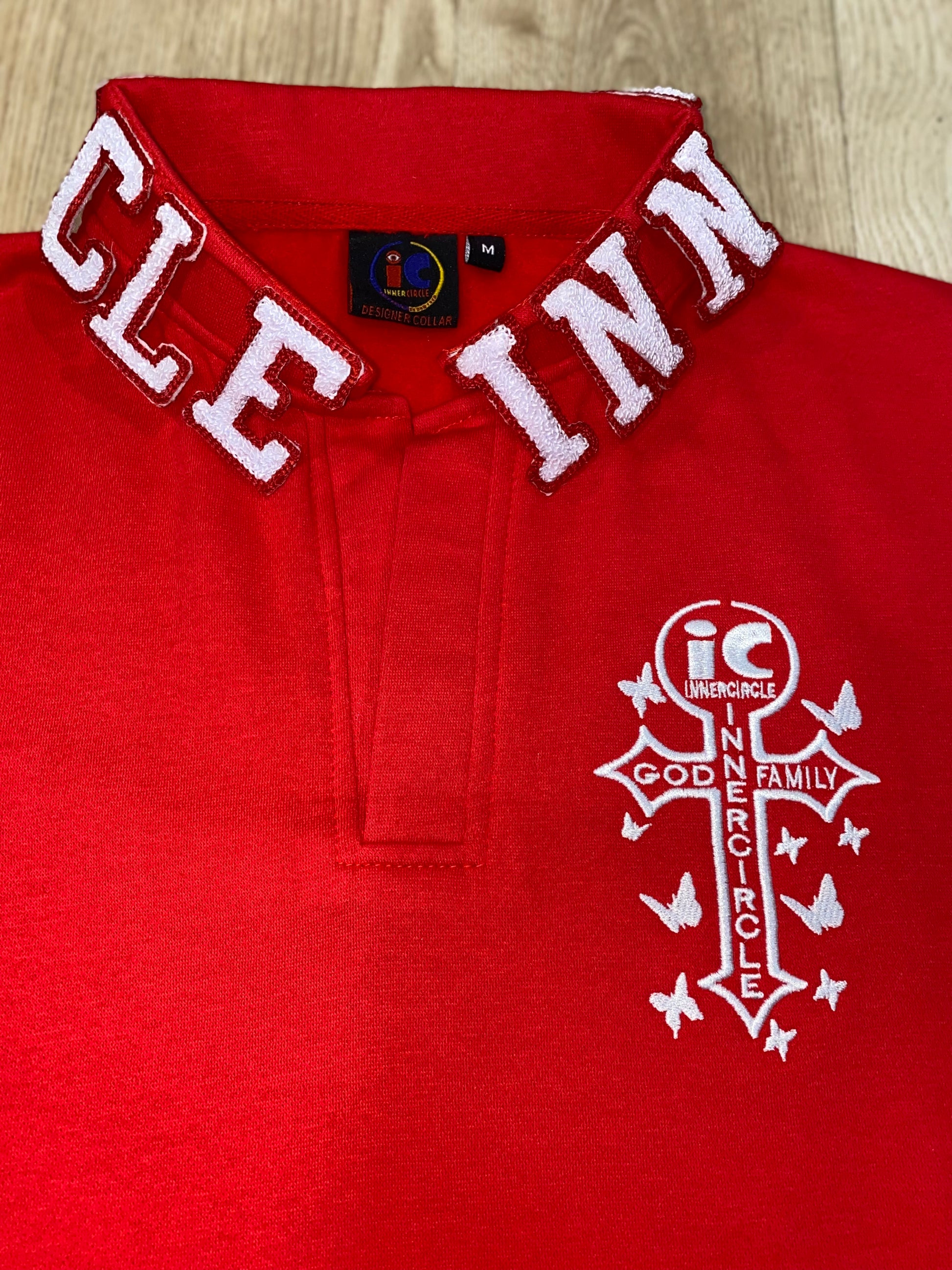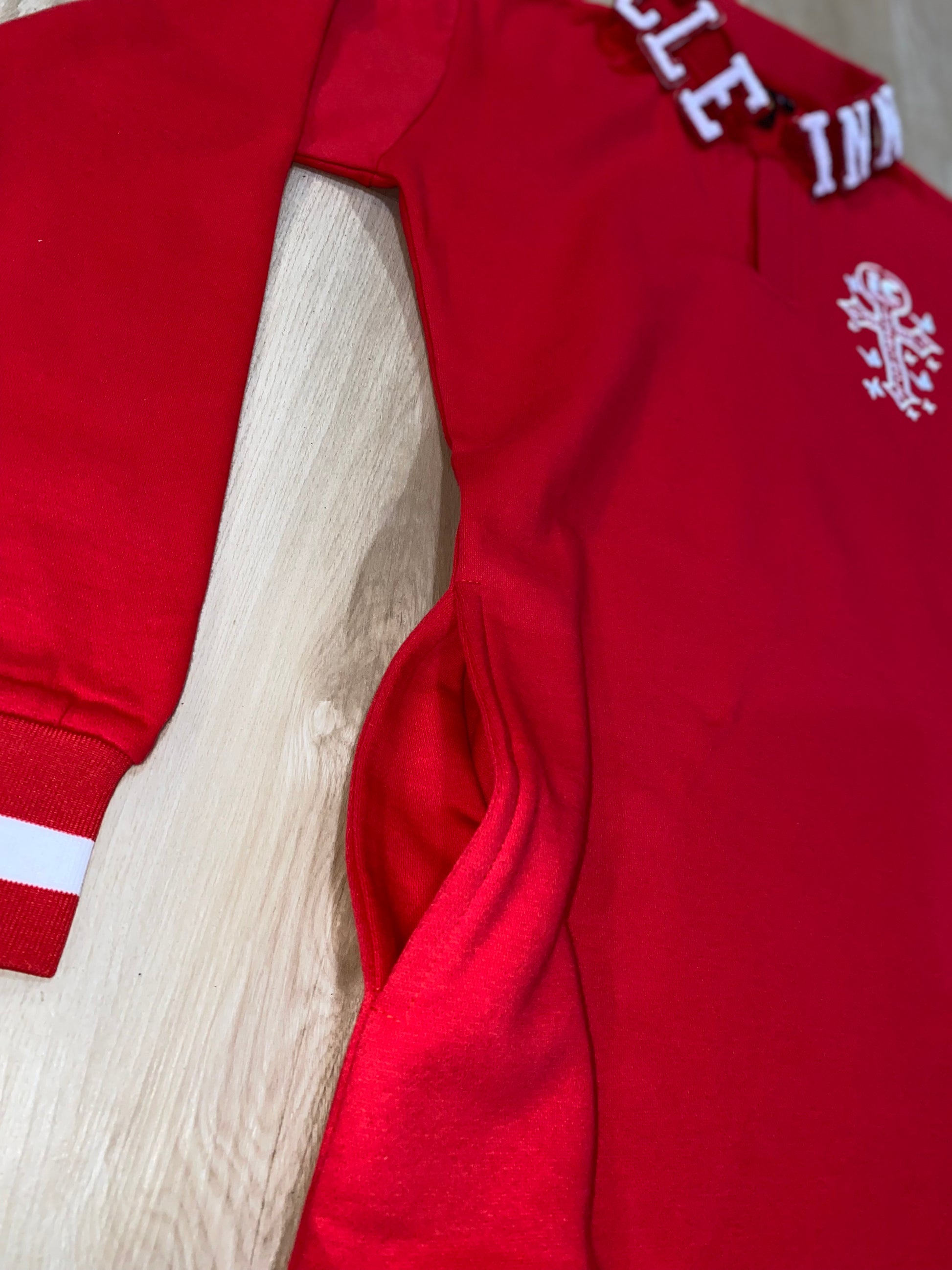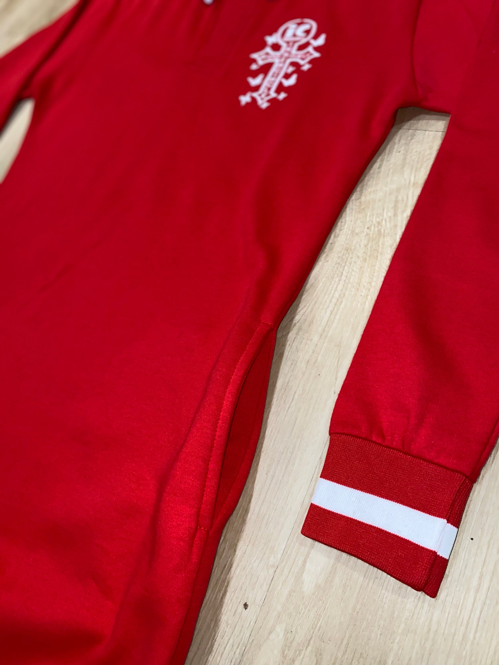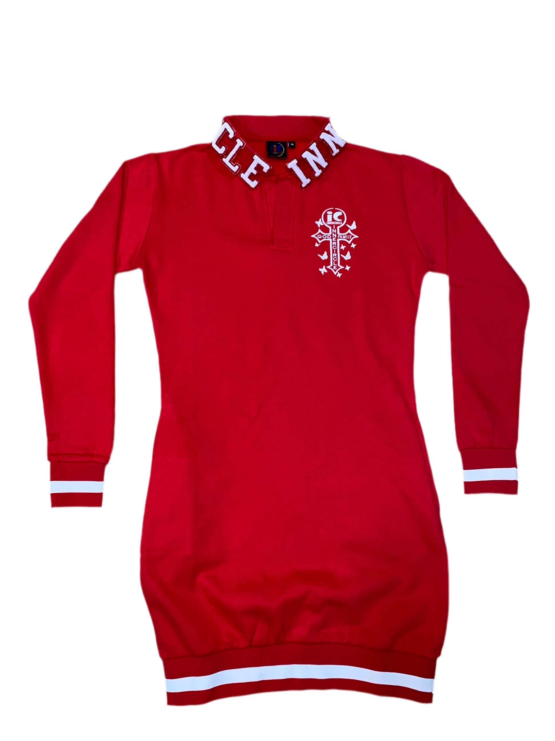 Soft touch fitted to body Collared Dress embroidered logo big vinyl logo back
